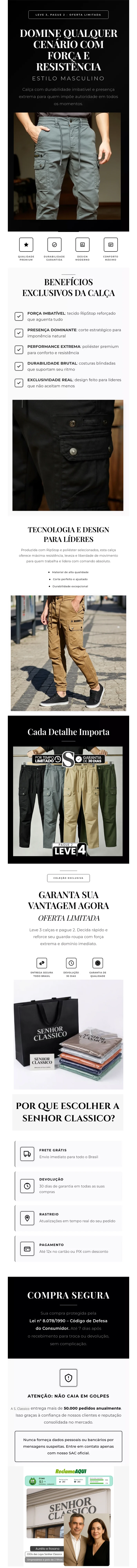 [Leve 4, Pague 2] Calça Tática Masculina Vulcan em Sarja Robusta de Algodão e Poliéster com Bolsos Táticos e Botões de Pressão