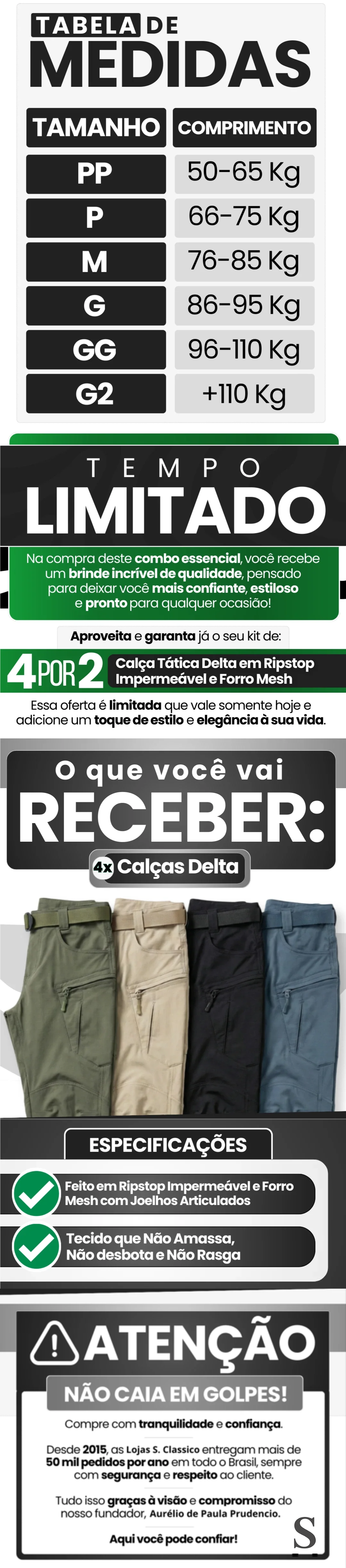A Calça Delta é forjada com 70% poliéster e 30% algodão em trama Ripstop pura. Você encara o trabalho pesado ou o estádio com proteção implacável contra água e rasgos. É o fim das roupas descartáveis. Sinta a força bruta de um tecido que não cede nunca.